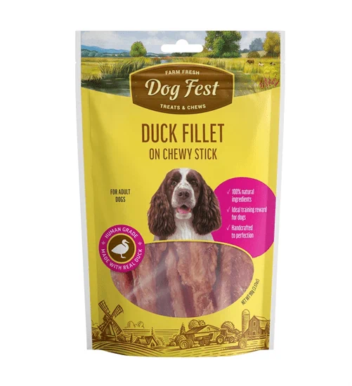 דוג פסט חטיף לכלב – פילה ברווז על מקל לעיסה 90 גרם Dog Fest