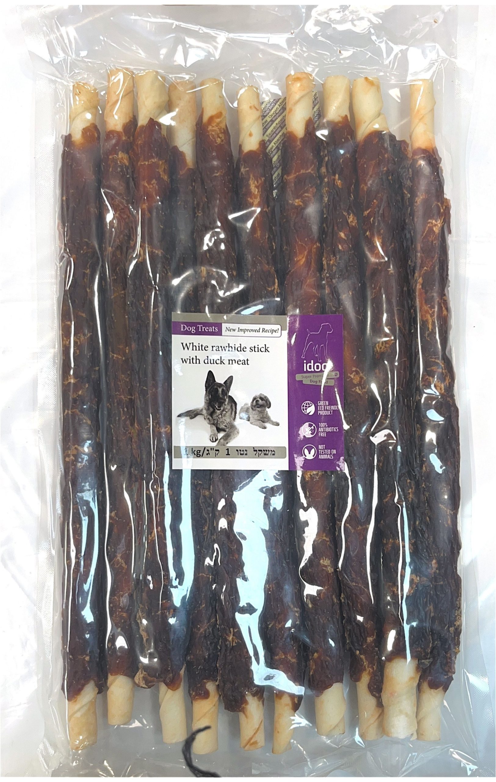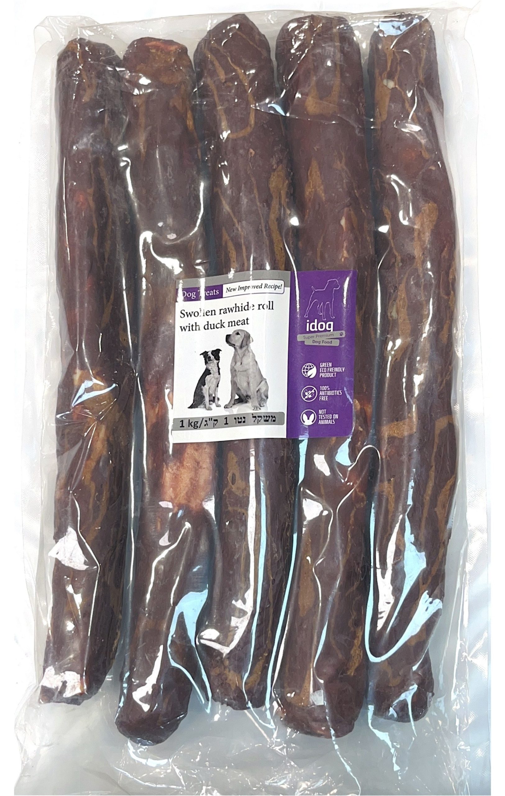 איידוג עצם לעיסה לכלב – מקל עור מלופף ברווז/ עוף/ בקר 35 ס"מ – 1 ק"ג Idog