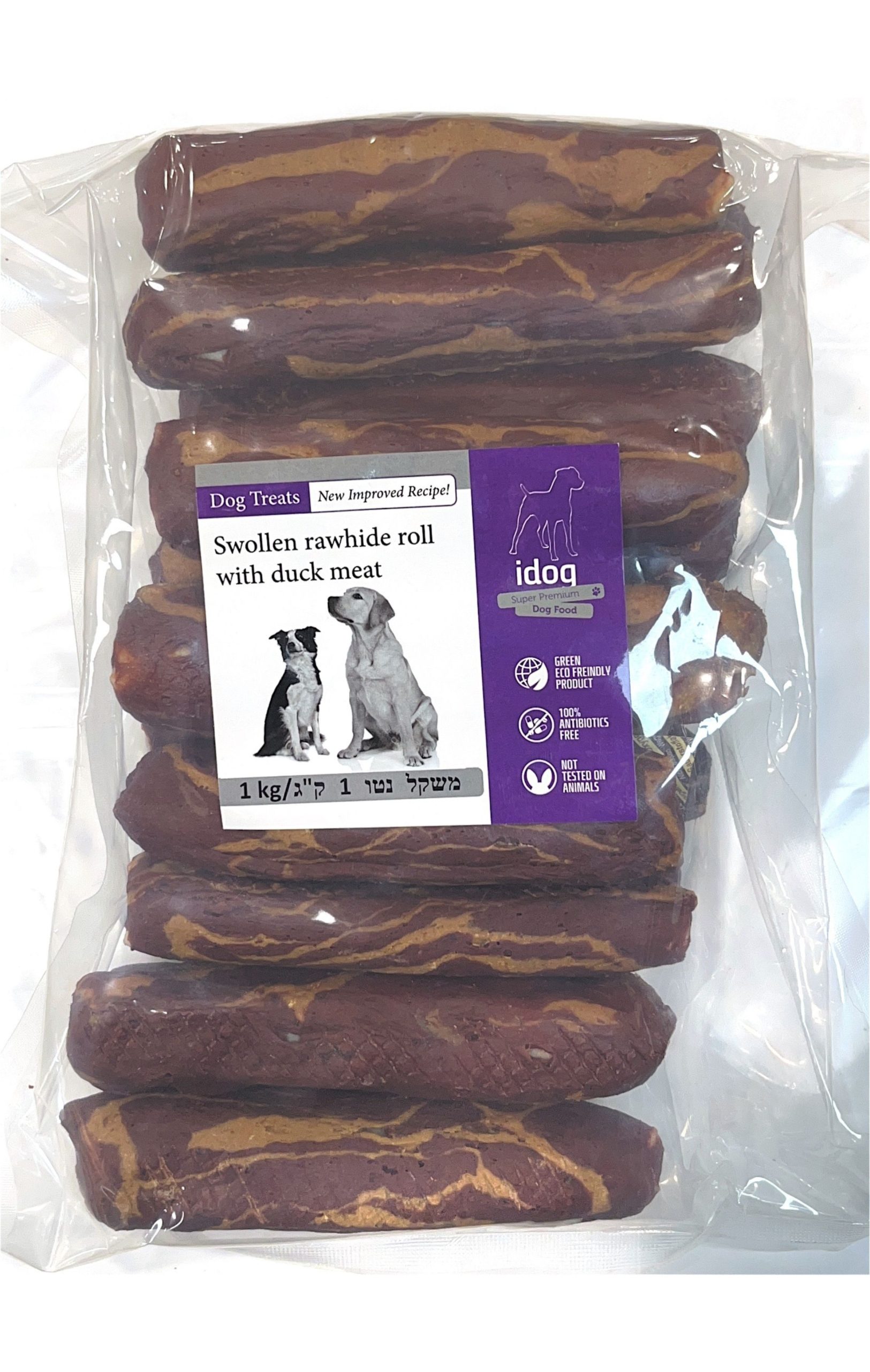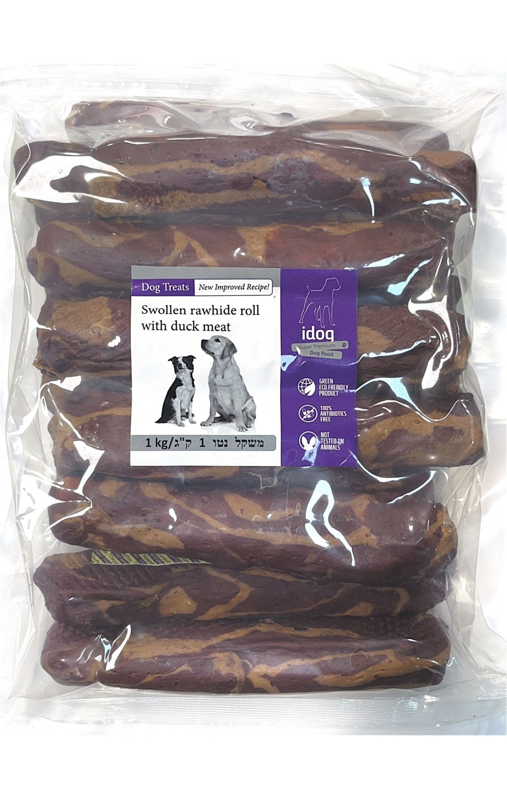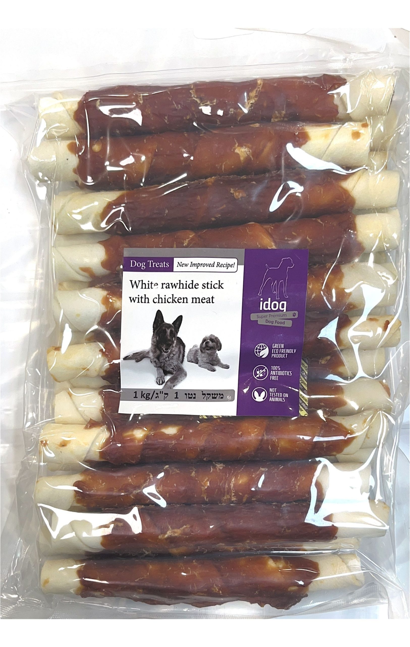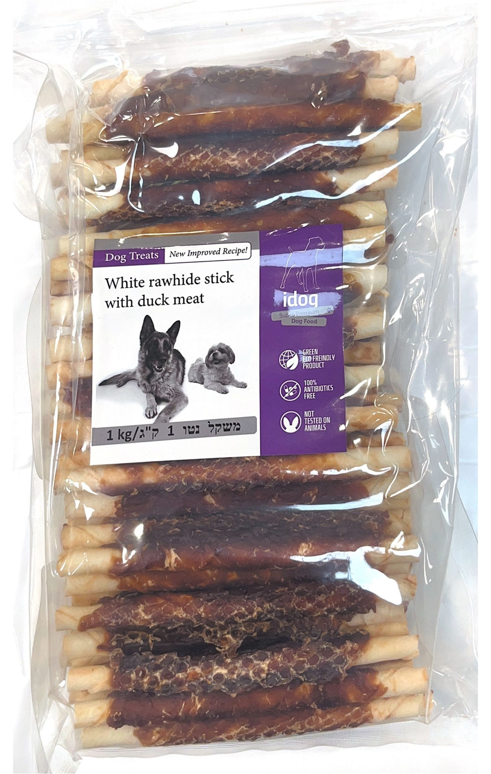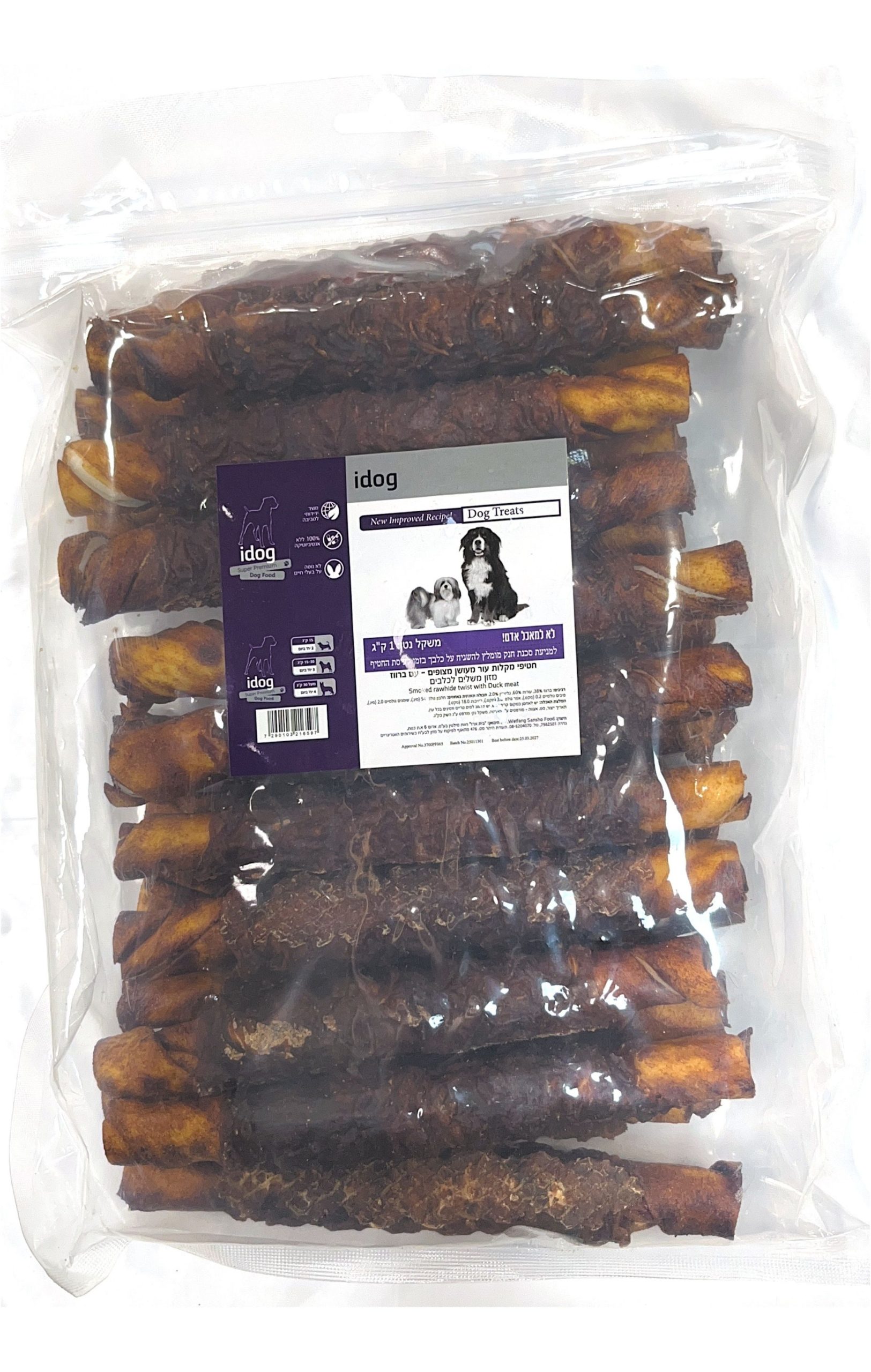 איידוג עצם לעיסה לכלב – מקל עור מלופף ברווז/ עוף/ בקר 18 ס"מ – 1 ק"ג Idog