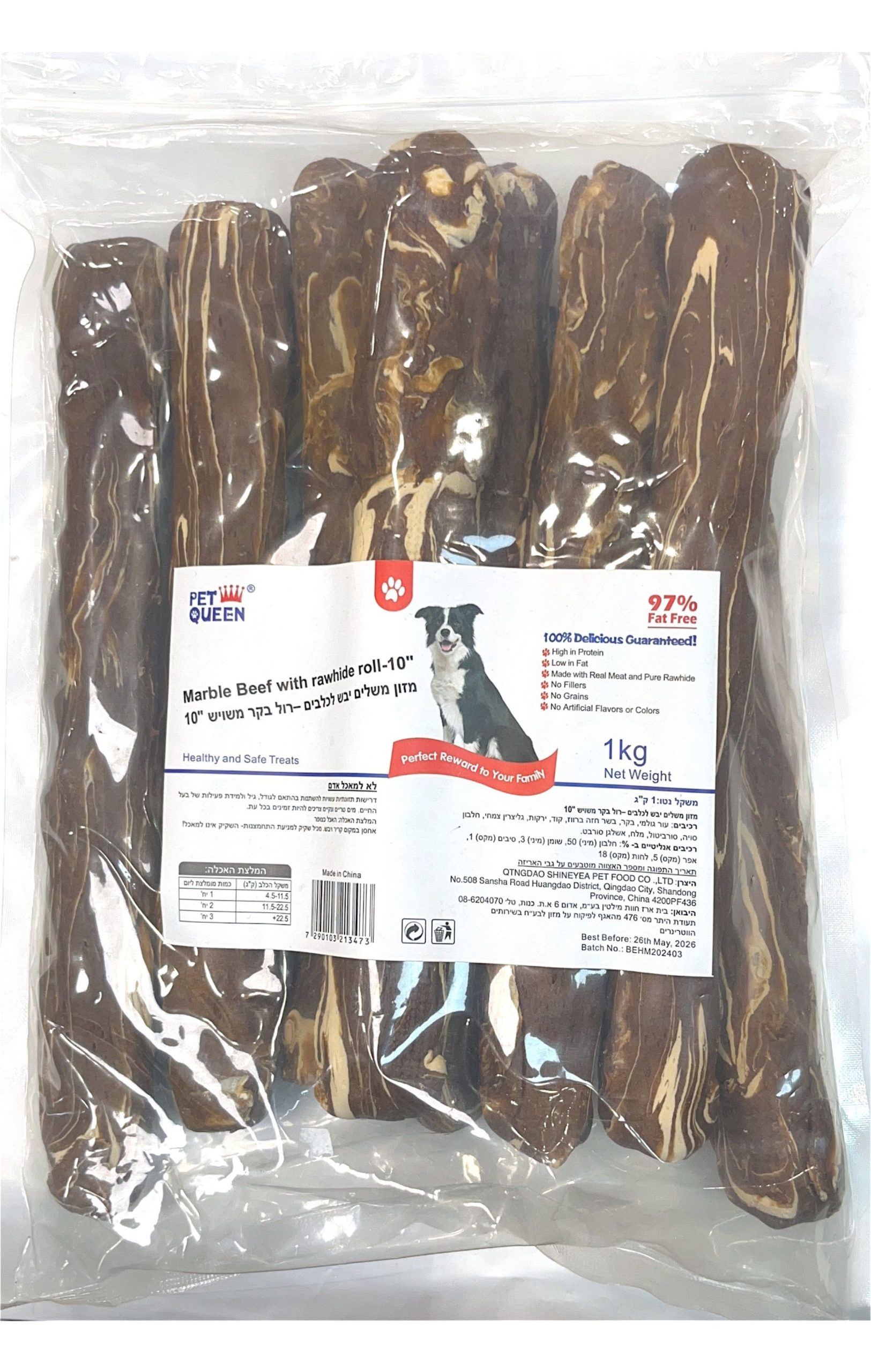פטקווין עצם לעיסה לכלב – מקל עור משויש בקר/ברווז 25 ס"מ – 1 ק"ג Pet Queen
