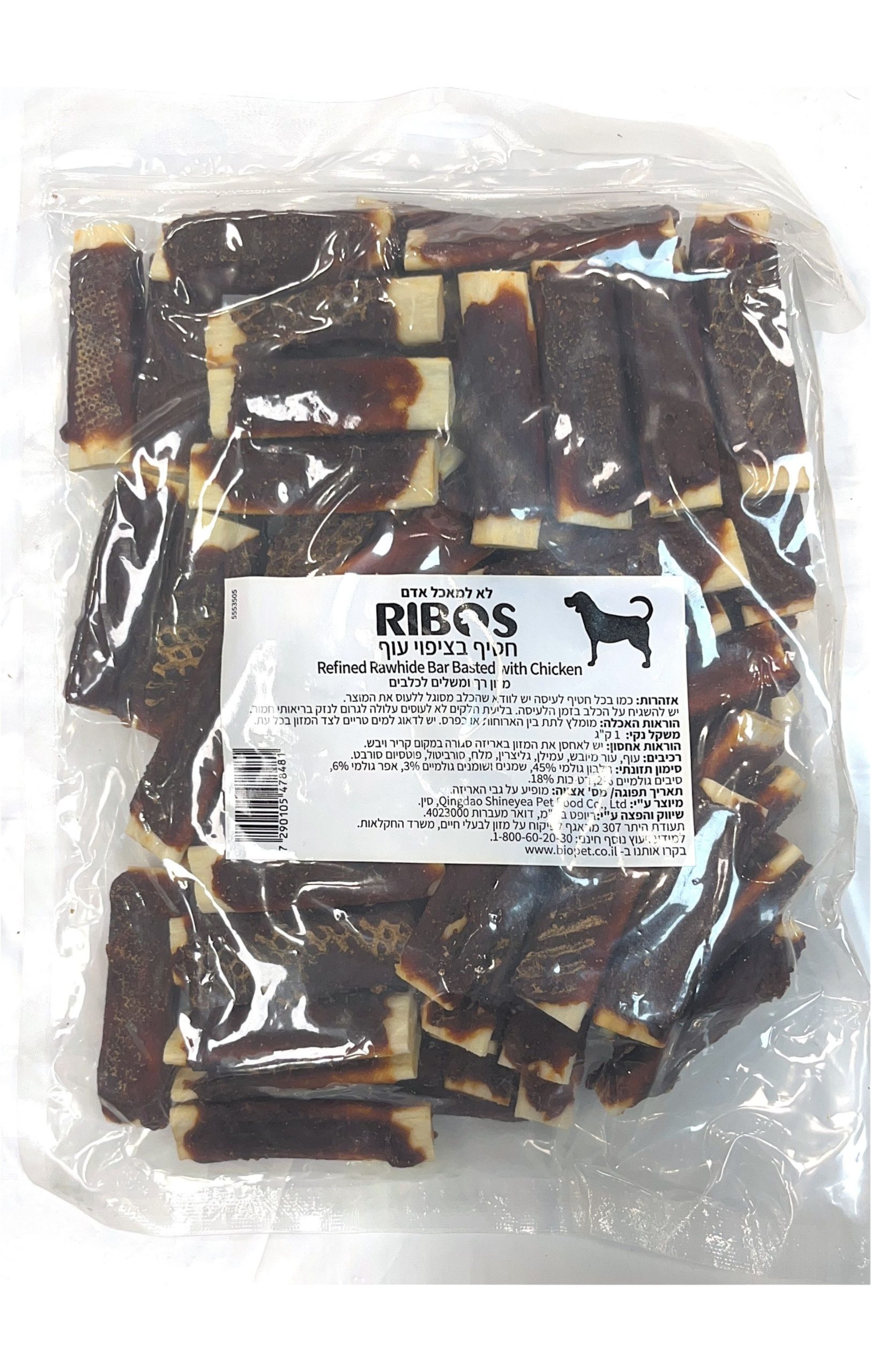 ריבוס חטיף לעיסה לכלב – מקל עור שטוח בציפוי עוף 1 ק"ג Ribos