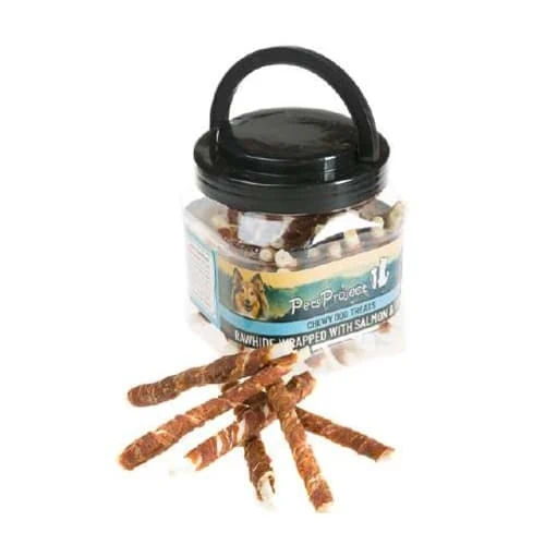 פטס פרוג'קט חטיף לעיסה לכלב – מקל עור בקר בציפוי סלמון/ ברווז/ ארנב 400 גרם Pets Project
