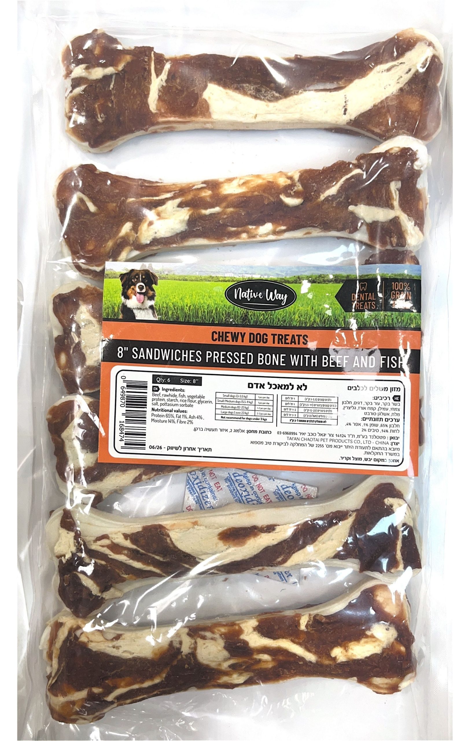 נייטיב וואי עצם לעיסה דחוסה לכלב – סנדוויץ' בקר ודג 10/15/20/25 ס"מ Native Way