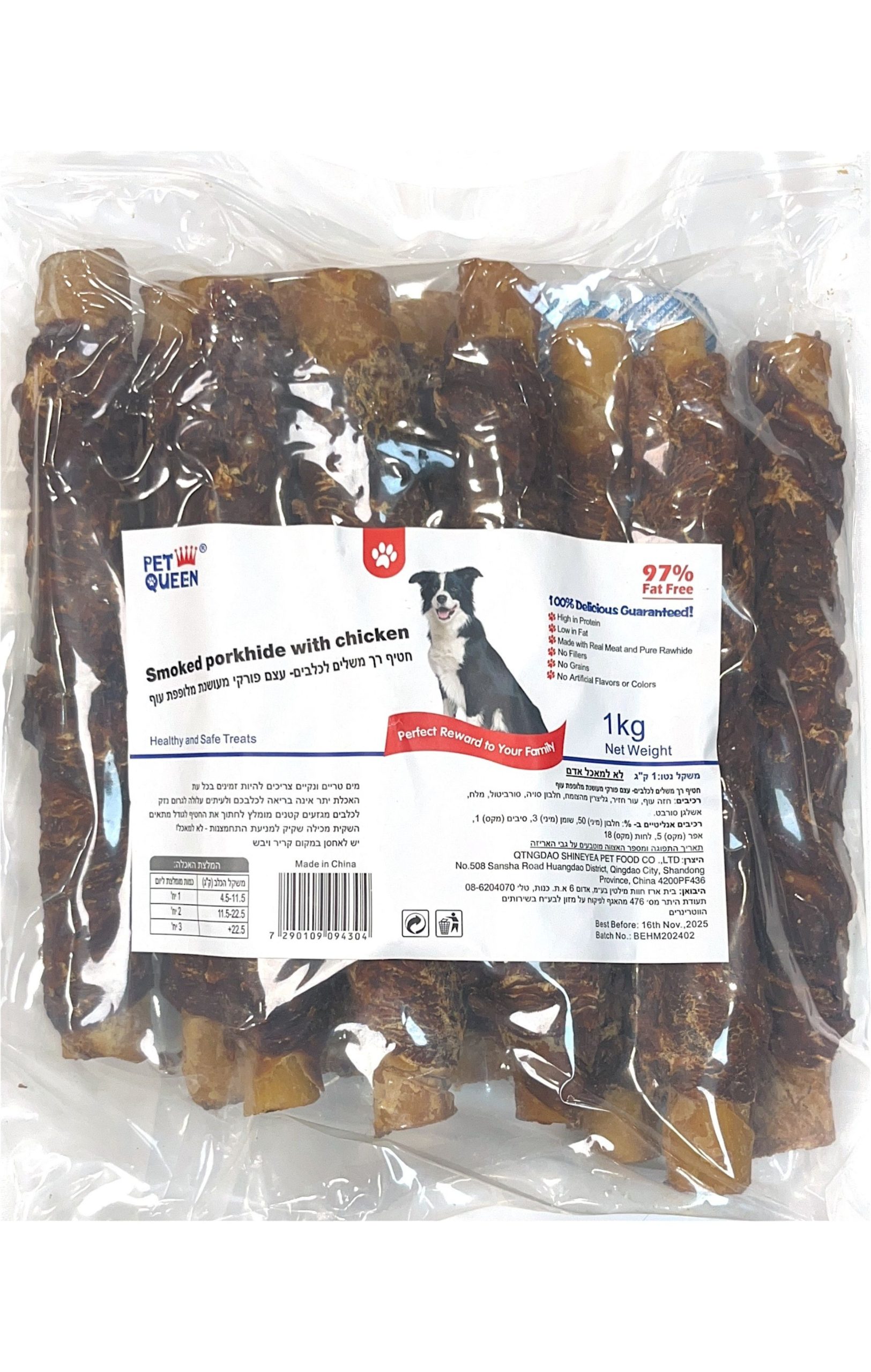 פטקווין עצם לעיסה לכלב – מקל פורקי מעושן מלופף עוף 20 ס"מ – 1 ק"ג Pet Queen