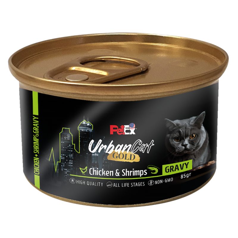 אורבן קט גולד עוף ושרימפס ברוטב מעדן רטוב לחתול – 85 גרם petex