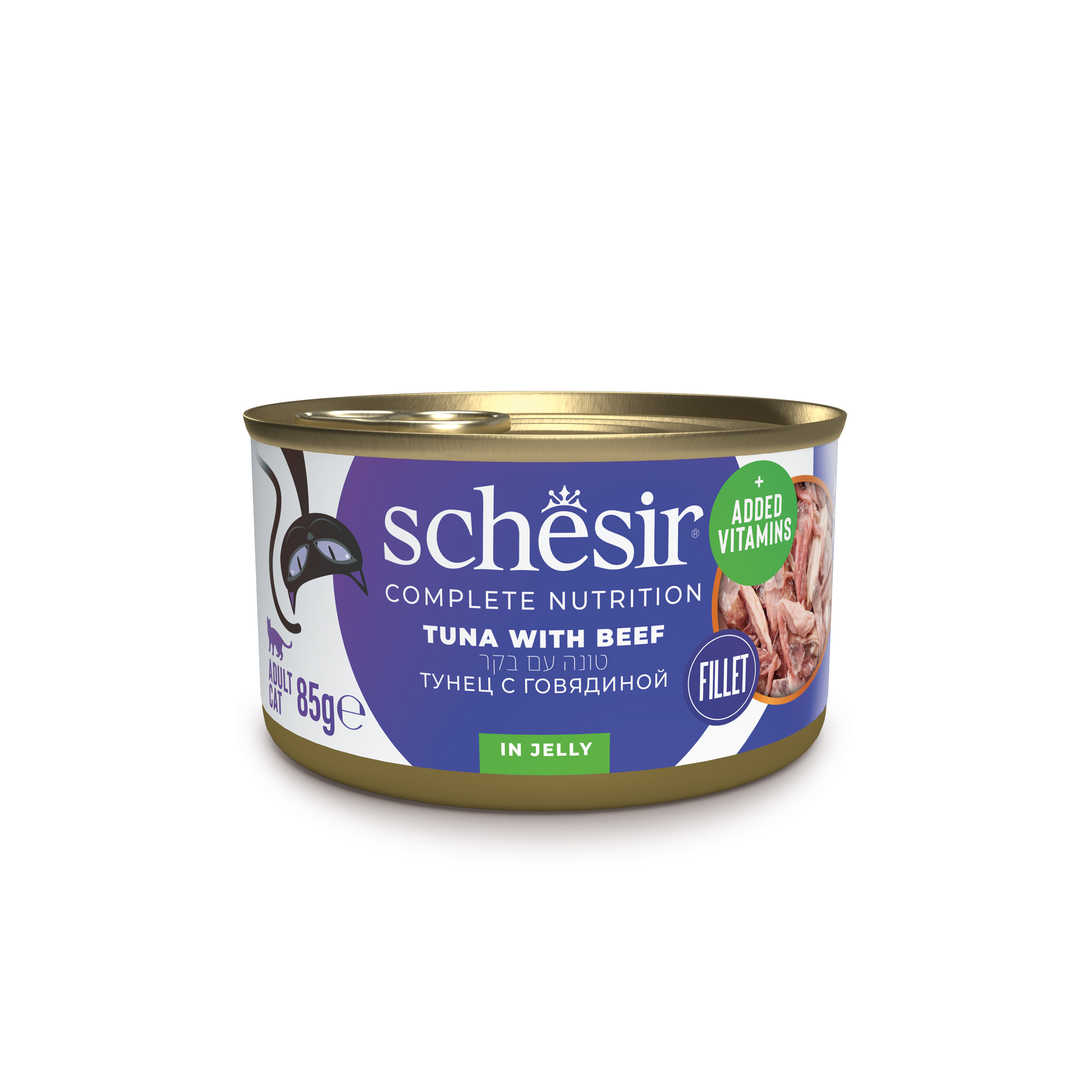 שזיר טונה עם בקר בג'לי מזון מלא רטוב לחתול – 85 גרם Schesir