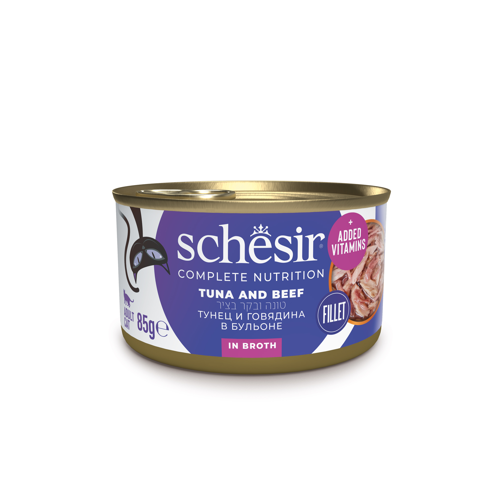 שזיר טונה עם בקר מזון מלא רטוב לחתול – 85 גרם Schesir