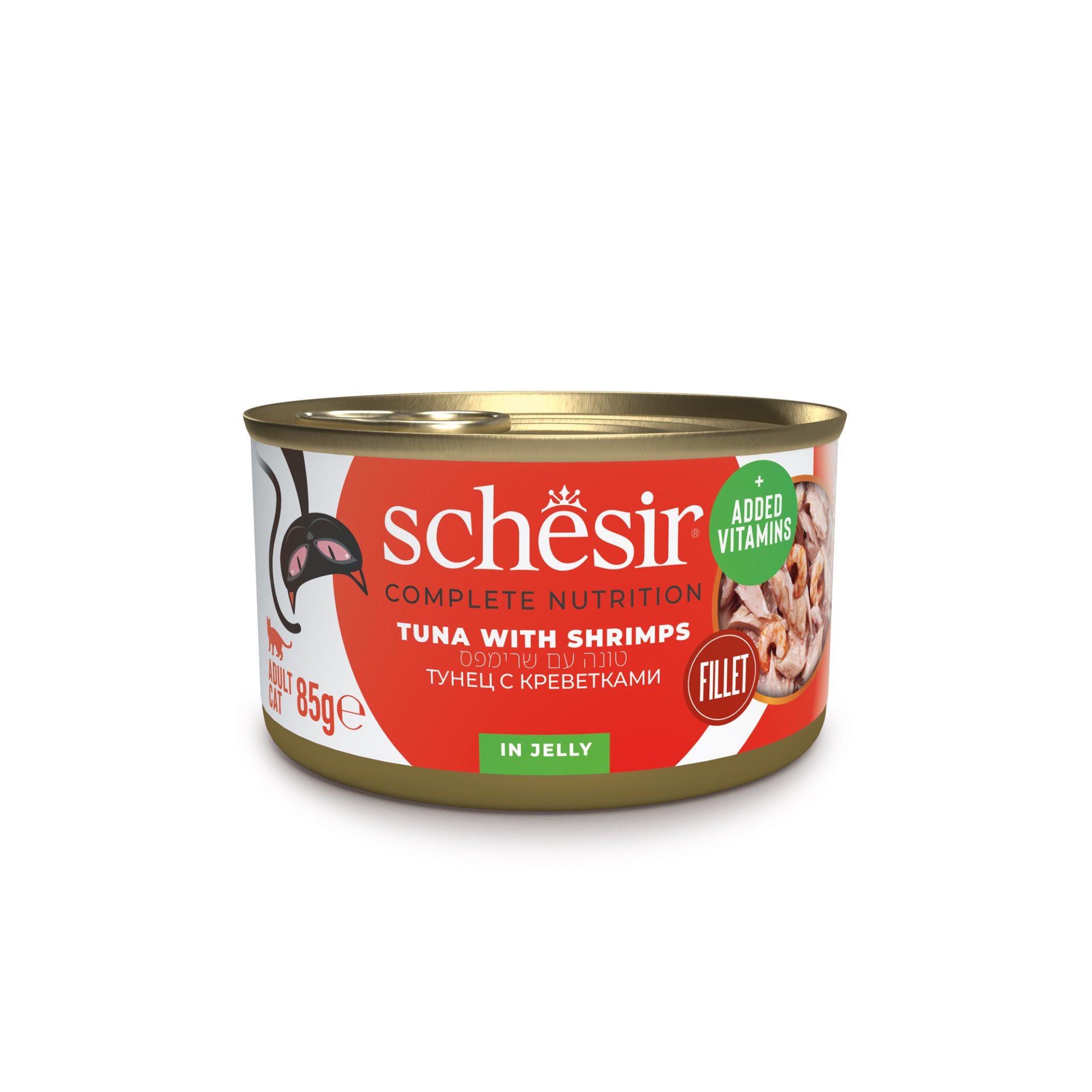 שזיר טונה עם שרימפס בג'לי מזון מלא רטוב לחתול – 85 גרם Schesir