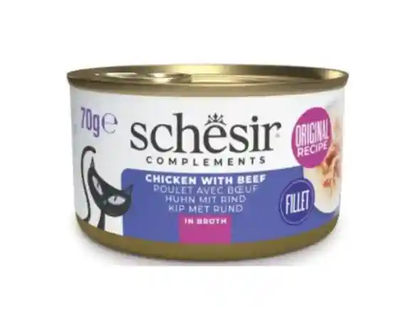 שזיר עוף ובקר בציר מזון משלים רטוב לחתול – 70 גרם Schesir